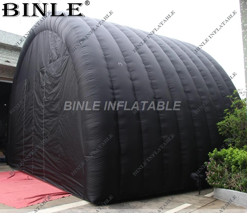 Outdoor show giant black inflatable stage cover tent inflatable tunnel with rear door for events